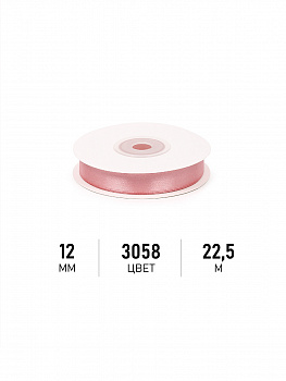 Лента атласная 12мм цв. 3058 св.гр.розовый Magic4Hobby уп. 22,5м (±1м) картон