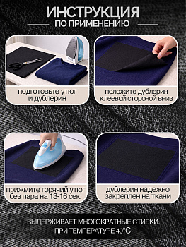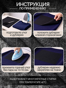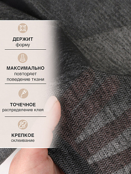 Сцепление с основным материалом происходит за счет клея при температуре 130-150℃ в течение 13-16 сек, давление 1,5-2,5 кг/см. Плотность дублерина с клеем 42 г кв.м, клей полиамидный, нанесен точечно. Вес клея 11 г кв.м. Состав 100% полиэстер.